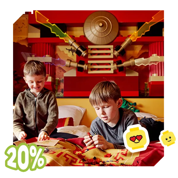 At the 4-star Hotel LEGOLAND®, you can stay in LEGO® themed rooms with the LEGO® NINJAGO® ninjas or in the LEGO® MOVIE™ rooms with the Master Builders from THE LEGO® MOVIE™ World.